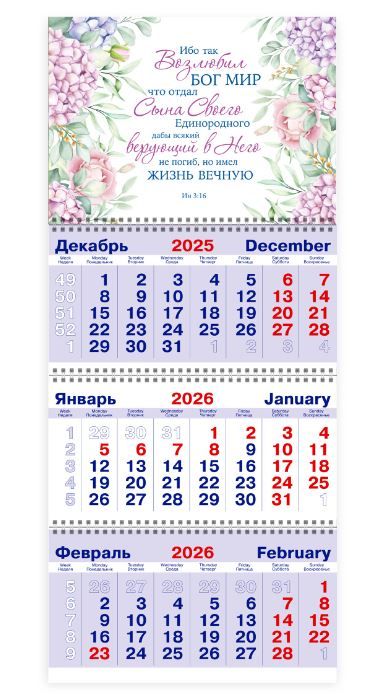 Календарь квартальный на 2026 год «Ибо так возлюбил Бог мир...»
