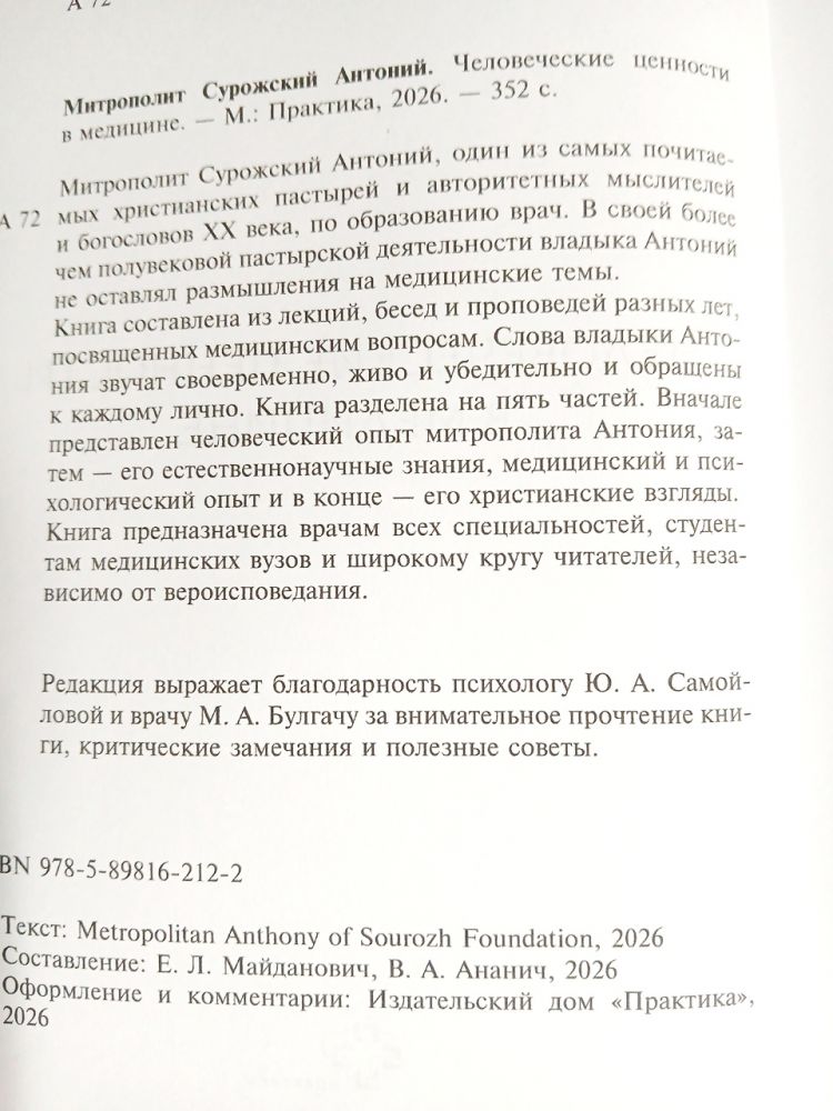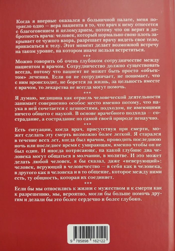 В книге митрополита Антония собраны его размышления на медицинские темы, которых он не оставлял на протяжении своей более чем полувековой пастырской деятельности.