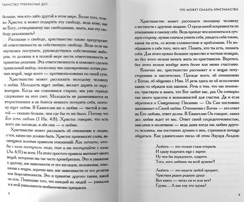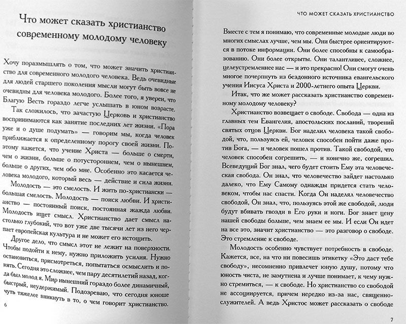 Владыка беседует с читателями о том, что христианство может сказать современному молодому человеку, о Церкви как пространстве свободы, о священническом служении и богословском образовании, делится историями из своего пастырского и ректорского опыта. О радости прощения и золотом правиле любви, о достоинстве женщины, о христианстве как встрече с Бесконечно Другим, о строительстве «живых храмов» и священническом окормлении, о свете и преображающей красоте добрых дел — размышления автора об этом и многом другом отличаются искренностью и глубиной.
