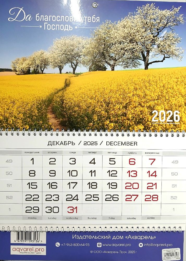 Календарь квартальный на 2026 год «Да благословит тебя Господь».