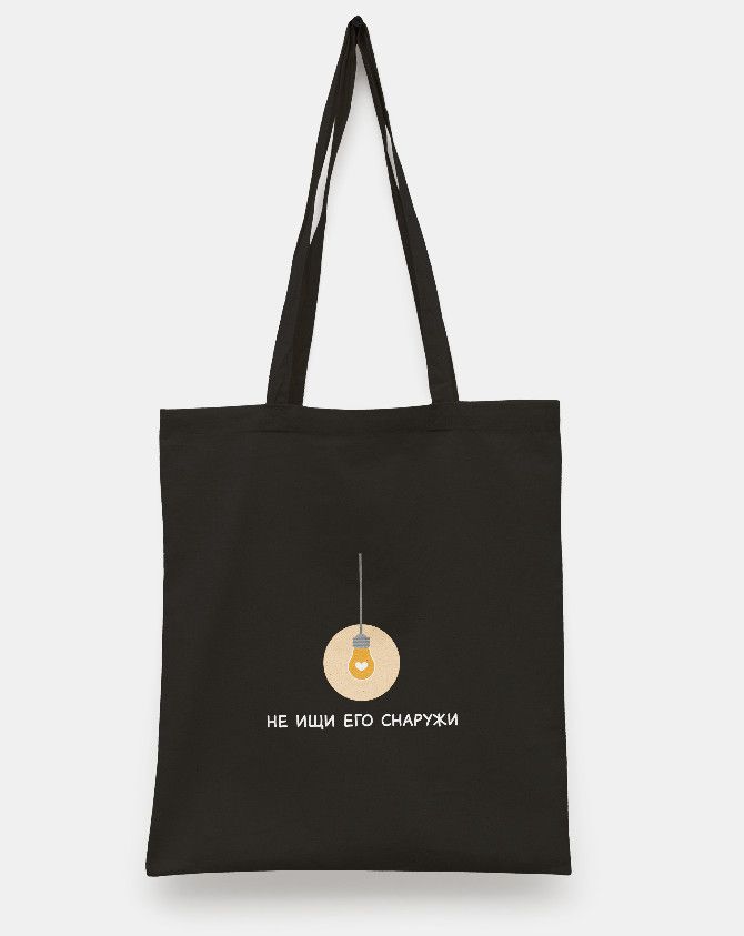 Сумка-шопер холщовая черная на молнии «Не ищи его снаружи».