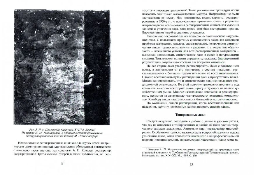 Методическое пособие посвящено актуальным вопросам технологии использования покровных лаков станковой живописи - наименее изученным с теоретической точки зрения и чрезвычайно важным в практическом плане. В нем содержатся краткая историческая справка по использованию покровных лаков в русской живописи XVIII-XIX вв. и рецептура их изготовления; приведены сведения о технологии покрытия картин лаком, упомянуты регенерация покровных лаков и метод Петтенкофера, малоизвестные и забытые факты о белковых и так называемых "временных" лаках. Помимо теоретических сведений пособие содержит основанные на многолетнем практическом опыте рекомендации по утончению, выравниванию и удалению авторского покрытия. Также рассмотрены свойства современных лаков, предназначенных для финишного покрытия.