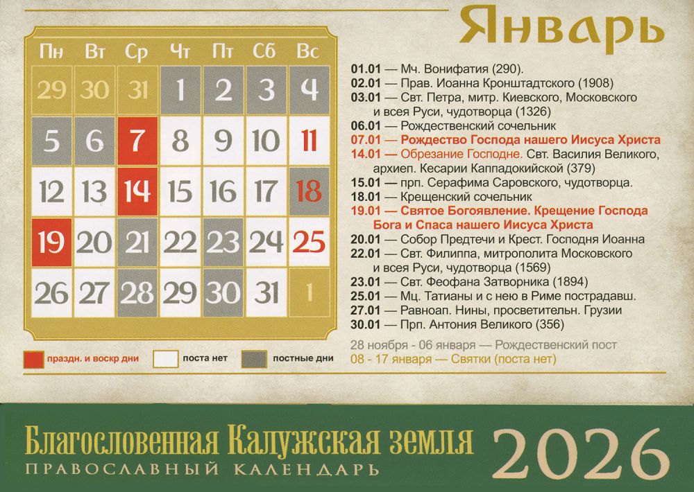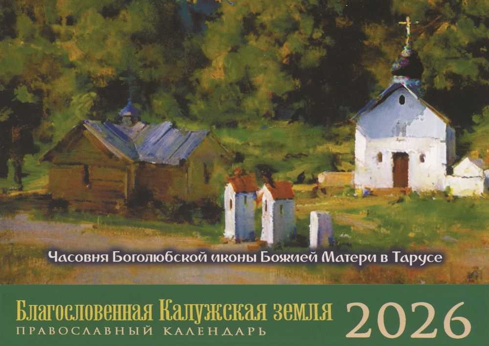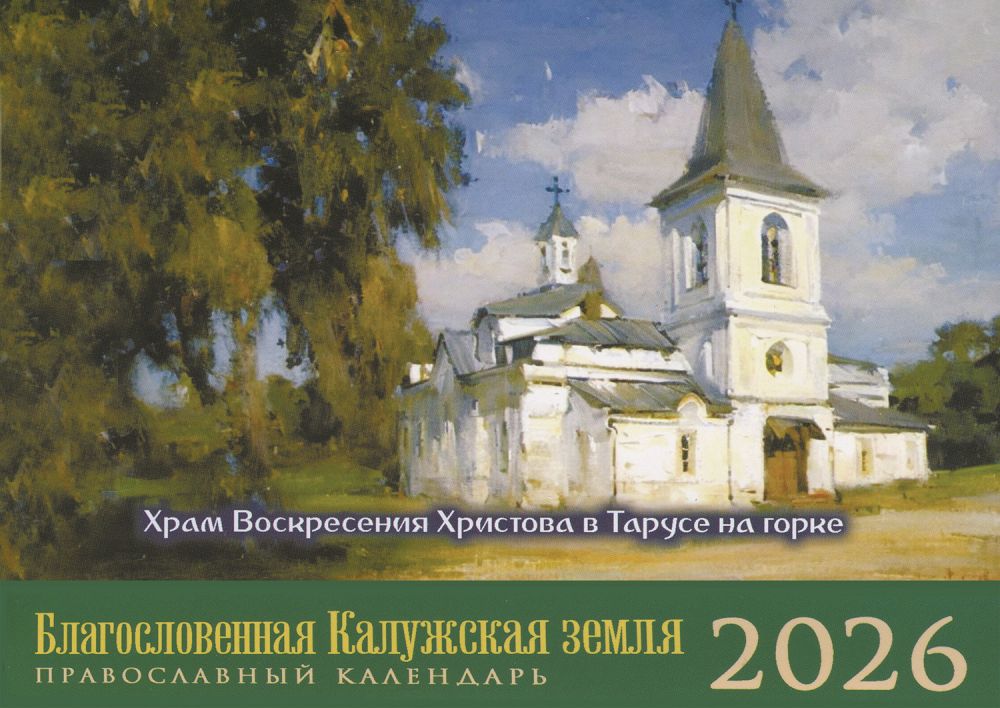 Православный календарь-домик на 2026 год посвящен благословенной Калужской земле. На лицевой стороне листов находится календарная сетка, где выделены воскресные, праздничные, постные дни, сплошные седмицы и дни особого поминовения усопших, а также приводятся даты двунадесятых и великих праздников, памяти чтимых святых и образов Пресвятой Богородицы, чье празднование отмечается в текущем месяце. На обороте листов – картины художников, на которых изображены храмы Тарусского края.