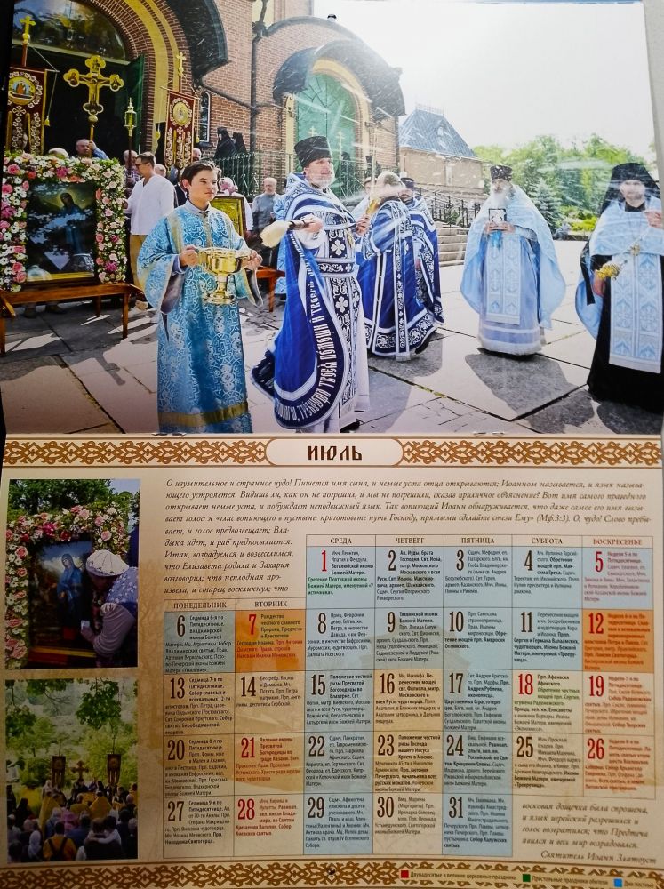 Яркий, красочный, духовно-радостный Пюхтицкий календарь украсит благочестивый православный интерьер и напомнит о знаменитой прекрасной женской обители, воздвигнутой на месте явления Божией Матери в маленькой Эстонии. Обители, которая никогда не прекращала своего молитвенного подвига, даже в те годы, когда гонения в многострадальной России достигли своего пика. Обители, наполненной духовным уютом, чистотой, созерцательностью, смиренным трудом... Календарь поможет соориентироваться в праздничных, памятных, постных днях годового цикла традиции русского православия...