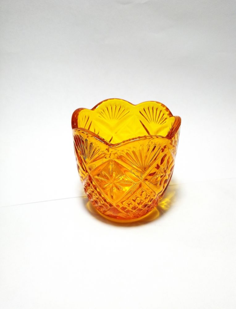 Стакан лампадный, художественная грань. Стекло желтое. Если Вы меняете лападные стаканчики в соотвтствии с богослужебными цветами - это обычный, будничный цвет, когда нет ни поста, ни пасхального цикла. Желтый, золотой - цвет божественных энергий, иконописного ассиста, цвет преподобных... У нас можно докупить всё, что сделает из стакана полноценную лампадку - поплавок-фитиледержатель, фитиль, масло лампадное, и даже чашечку для ладана ("паучок"), располагающуюся на ножках, опирающихся на края лампадки над пламенем.
