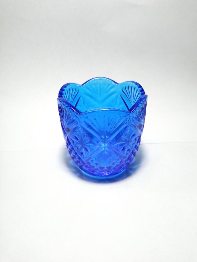 Стакан лампадный, художественная грань. Стекло синее. Если Вы меняете лампадные стаканчики в соотвтствии с богослужебными цветами - этот небесный цвет - цвет Пресвятой Богородицы, цвет богродичных праздников... У нас можно докупить всё, что сделает из стакана полноценную лампадку - поплавок-фитиледержатель, фитиль, масло лампадное, и даже чашечку для ладана ("паучок"), располагающуюся на ножках, опирающихся на края лампадки над пламенем.