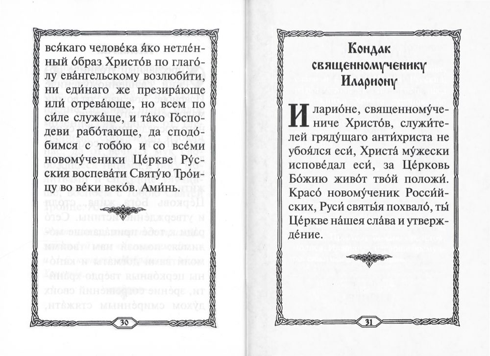 Акафист священномученику Илариону, архиепископу Верейскому, напечатанный крупным гражданским шрифтом, утвержден решением Священного Синода от 9 июля 2019 года.