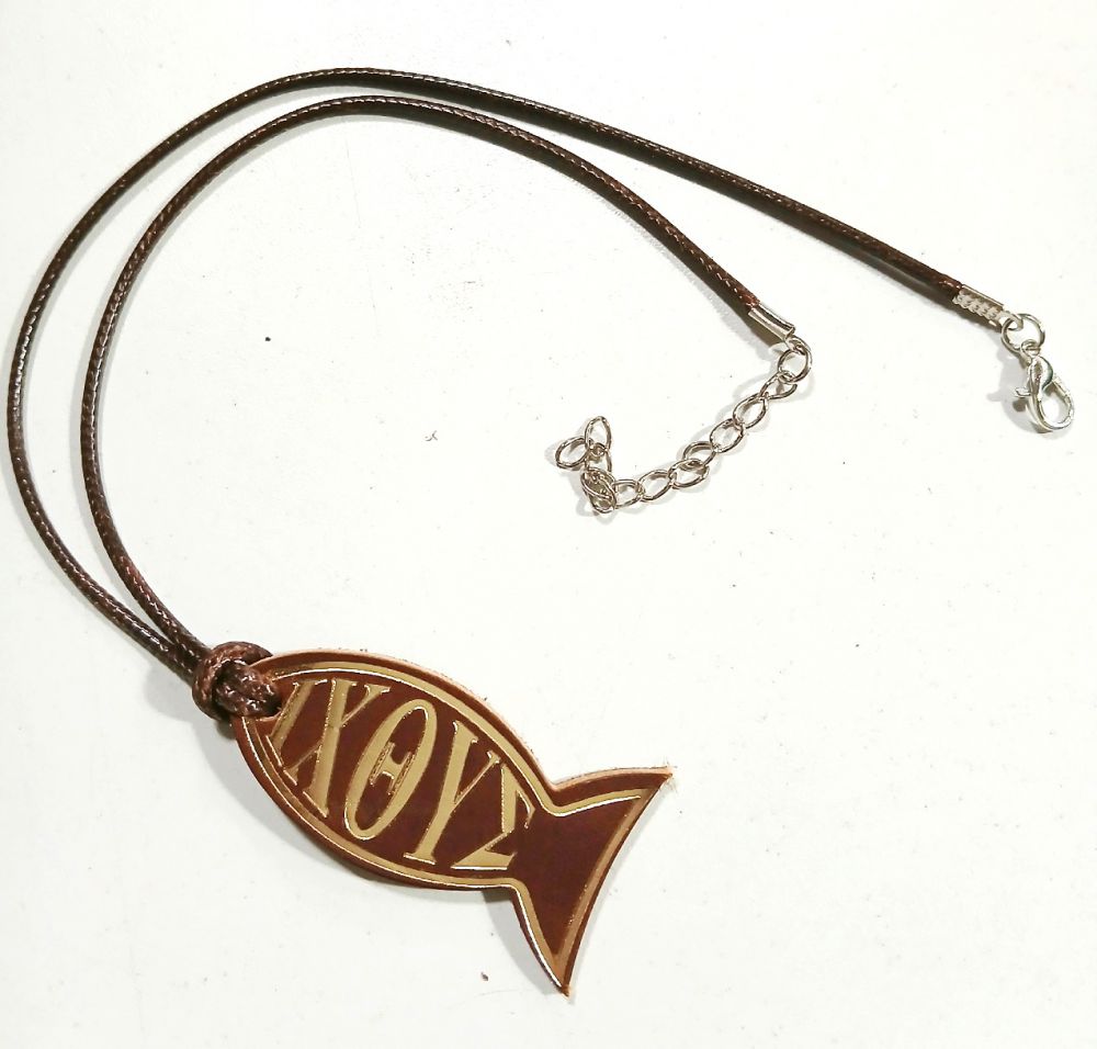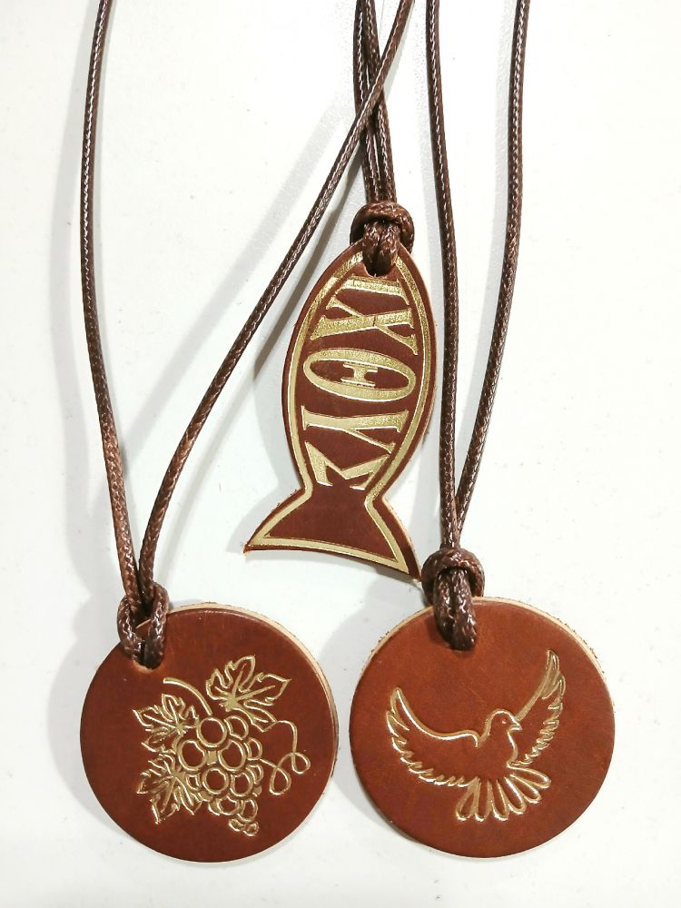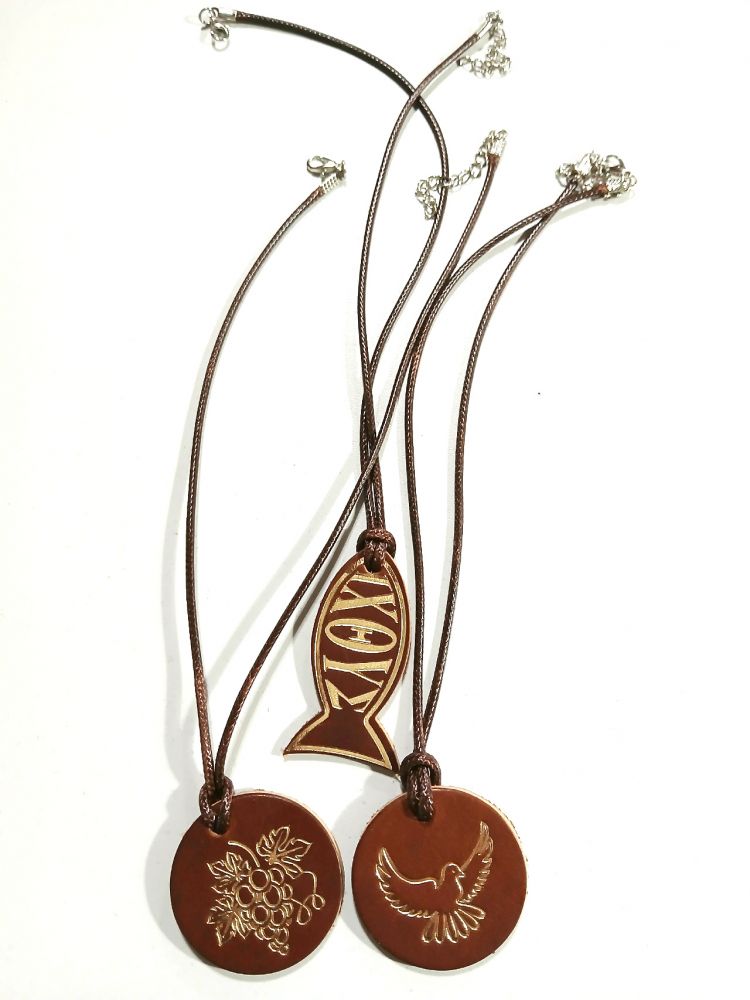 Подвеска Кожа с тиснением (кулон на кожаном шнурке, диам 40 мм, Западно-Уральская миссия)