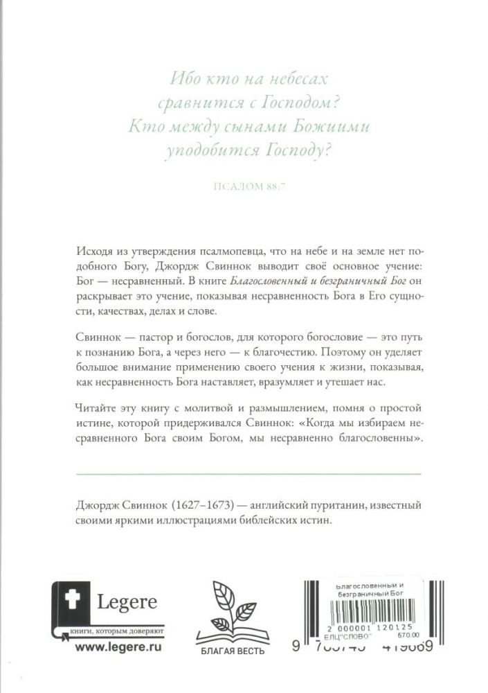Читайте эту книгу с молитвой и размышлением, помня о простой истине, которой придерживался Свиннок: «Когда мы избираем несравненного Бога своим Богом, мы несравненно благословенны».