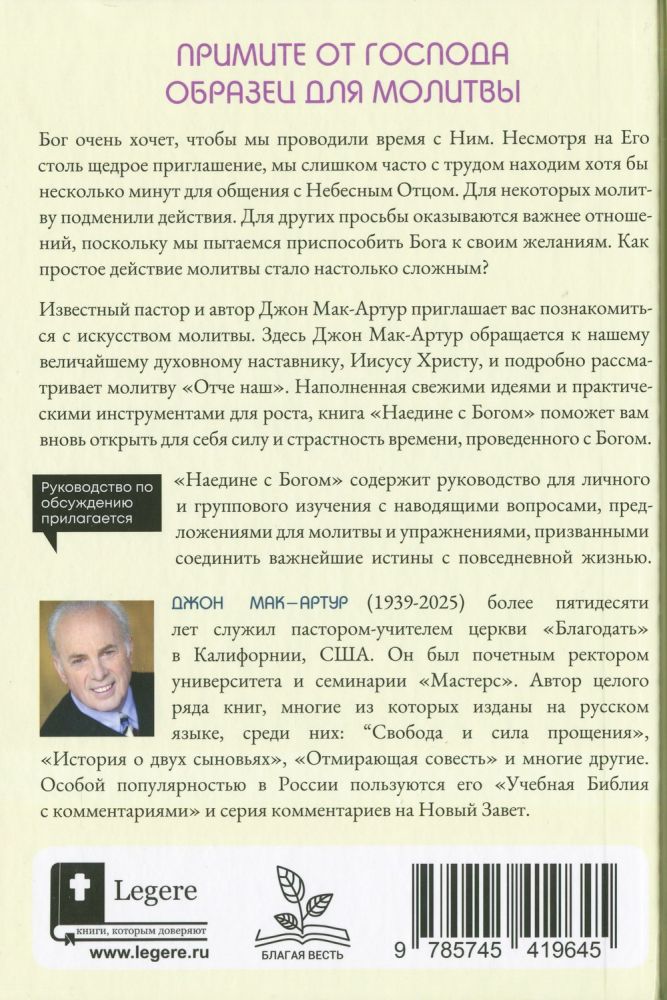 Известный пастор и автор Джон Мак-Артур приглашает вас познакомиться с искусством молитвы. Здесь Джон Мак-Артур обращается к нашему величайшему духовному наставнику, Иисусу Христу, и подробно рассматривает молитву «Отче наш». Наполненная свежими идеями и практическими инструментами для роста, книга «Наедине с Богом» поможет вам вновь открыть для себя силу и страстность времени, проведенного с Богом.