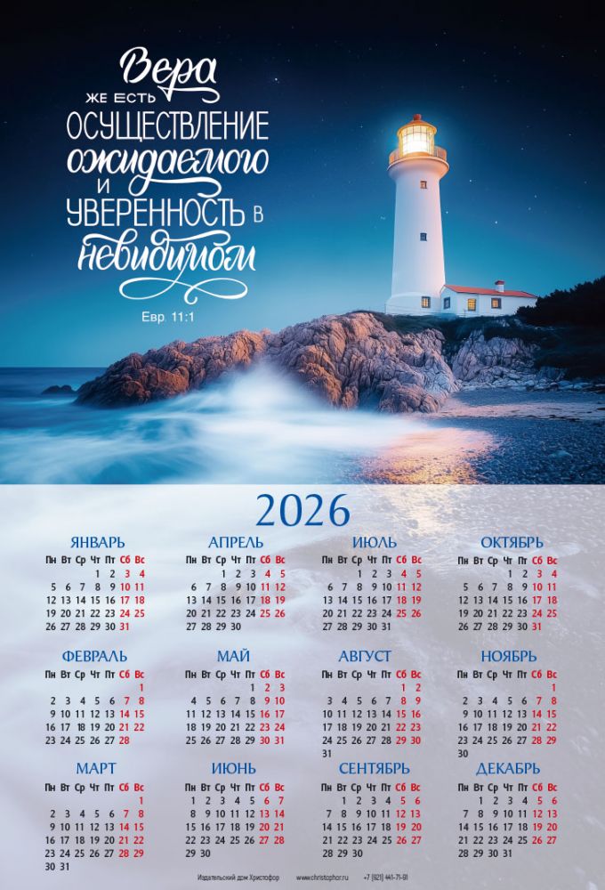 Календарь листовой на 2026 год «Вера же есть осуществление ожидаемого и уверенность в невидимом» (Евр. 11:1)