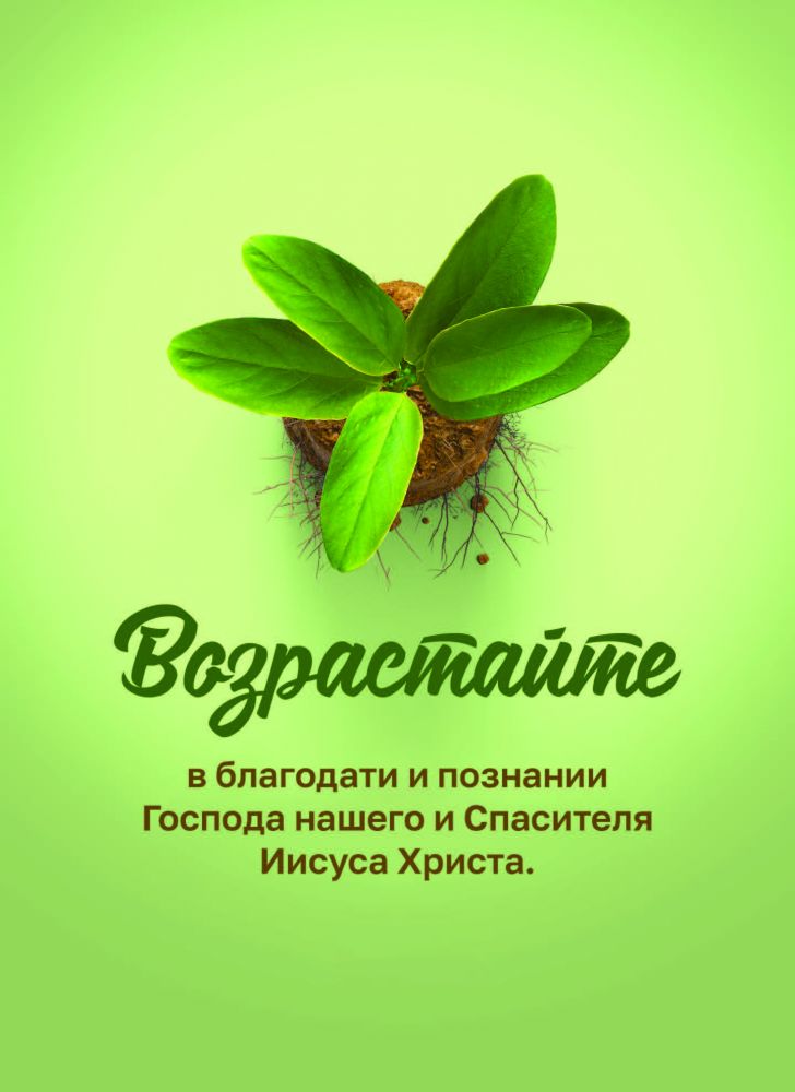 Главная / Книги / Сувениры. Изобразительная продукция / Открытка цветная А6 «Возрастайте в благодати и познании Господа нашего...» (Ученик)