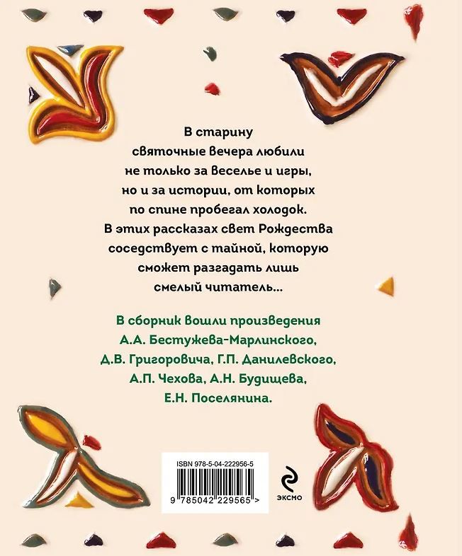 Серия «Теплое чтение» объединяет две традиции: печные изразцы и праздничные рассказы. Для оформления книг используются уникальные изразцы из старинных дворцов, усадеб и монастырей, а внутри читателя ждут тематические рассказы русских и зарубежных писателей. В рождественскую пору мы предлагаем вам мысленно прикоснуться к печам, около которых грелись Лесков и Диккенс, Гофман и Достоевский, и порадоваться с ними ожиданию необыкновенных, светлых, радостных дней с книгами серии «Теплое чтение». Праздничное оформление страниц, плотная белая бумага, крупный шрифт.