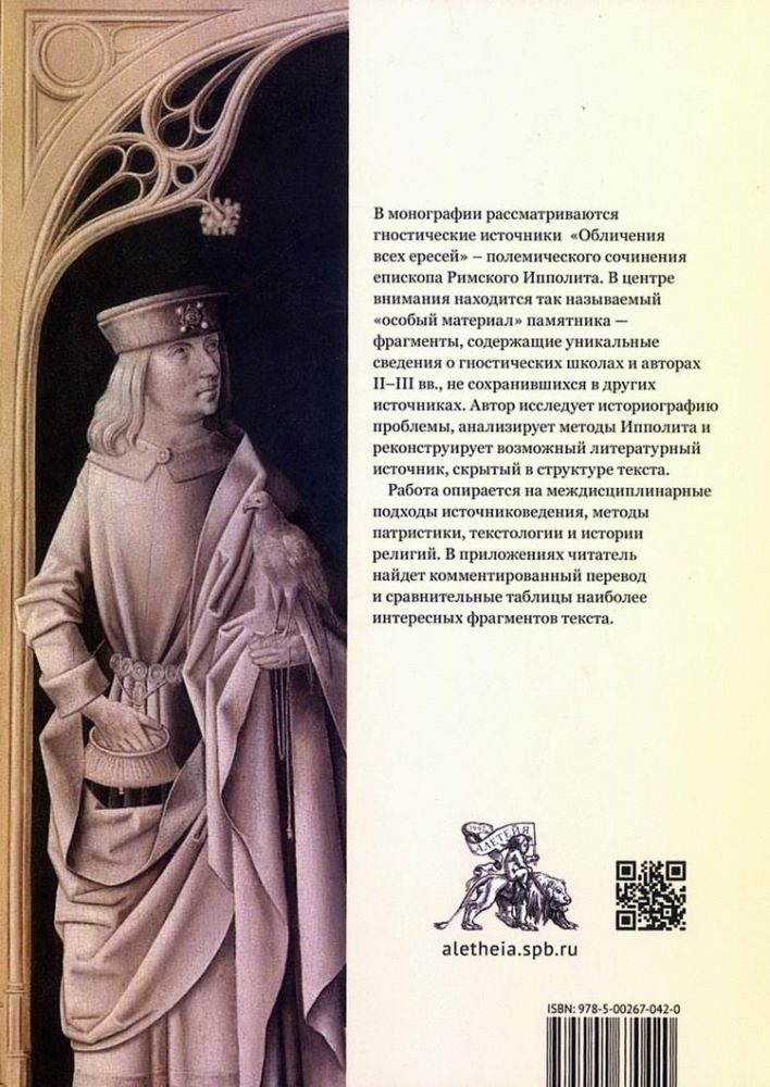 В монографии рассматриваются гностические источники "Обличения всех ересей" — полемического сочинения епископа Римского Ипполита. В центре внимания находится так называемый "особый материал" памятника — фрагменты, содержащие уникальные сведения о гностических школах и авторах II-III вв., не сохранившиеся в других источниках. Автор исследует историографию проблемы, анализирует методы Ипполита и реконструирует возможный литературный источник, скрытый в структуре текста.