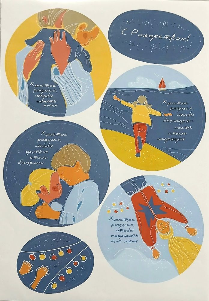 Лист стикеров авторских: цветная графика. 6 христианских сюжетов.