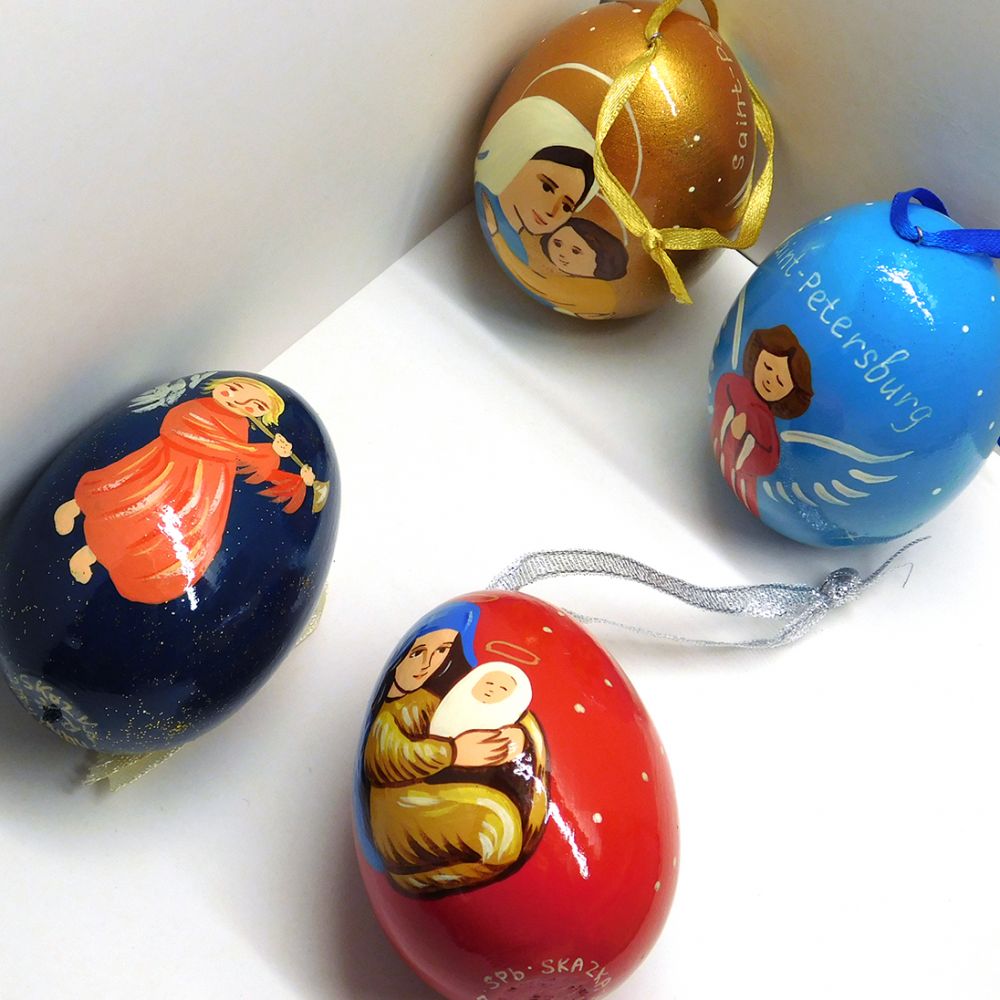 Яйцо на ленте «Рождество» деревянное 65 мм в ассортименте (Федорова ИП)