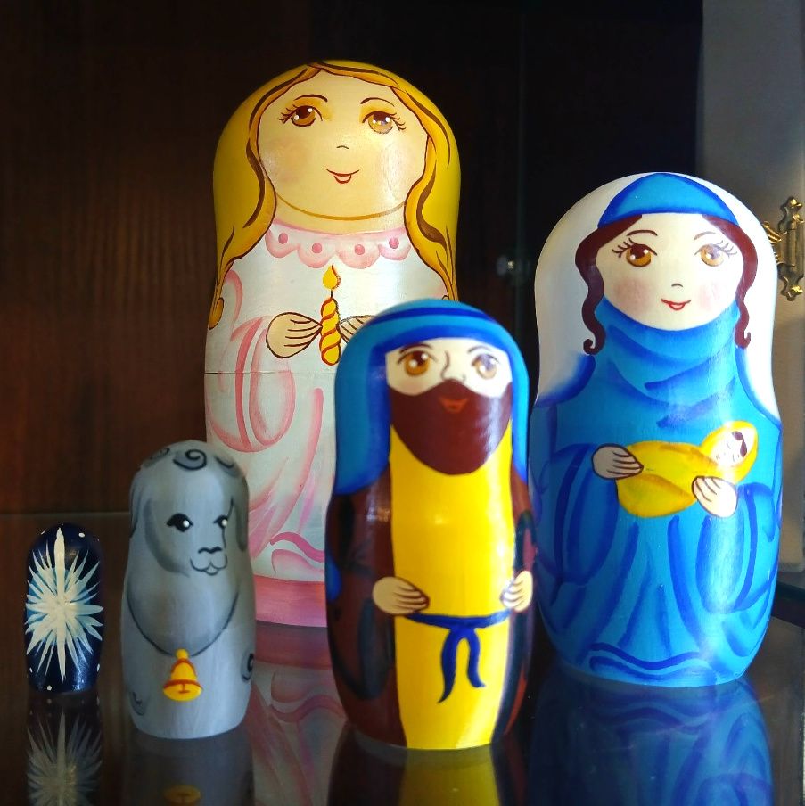 Матрешка рождественская. 5 фигурок. Высота 14,5 см, диаметр 6,5 см