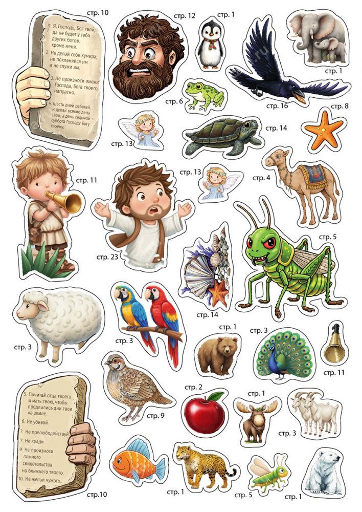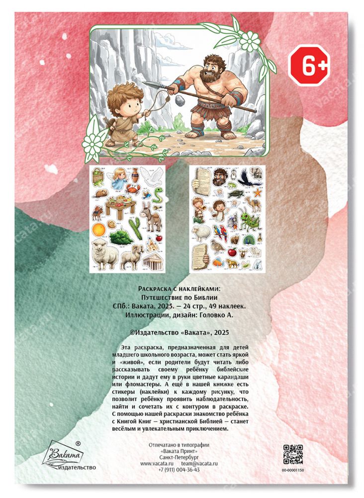 Раскраска «Путешествие по Библии. Раскрашиваем и дополняем наклейками» дополнена 49 наклейками. Она предназначена для непринужденных занятий с ребенком дошкольного и младшего школьного возраста.