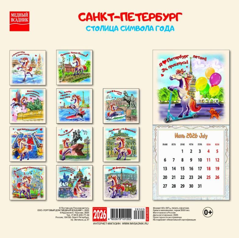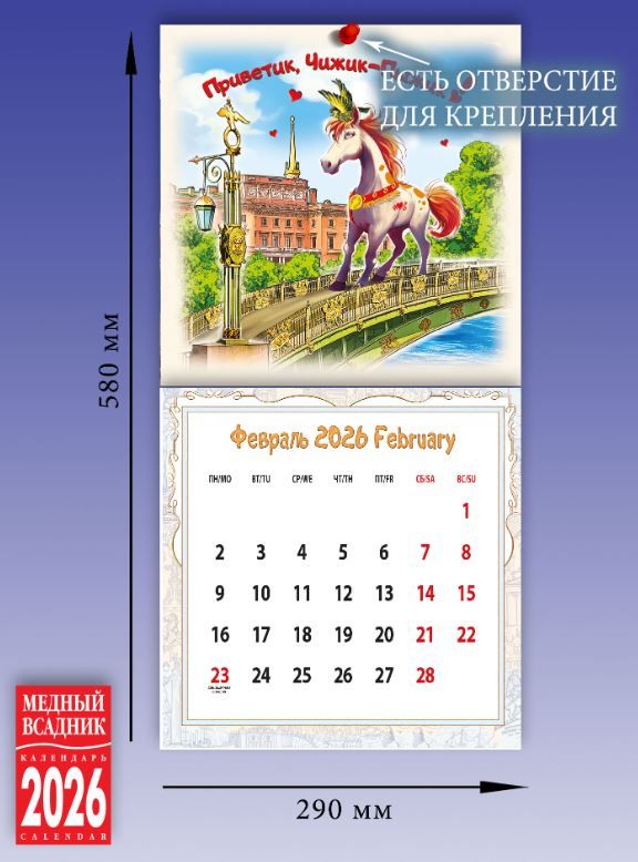 Календарь на скрепке на 2026 год «Санкт-Петербург — столица символа года»