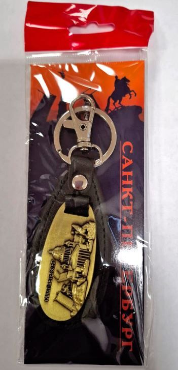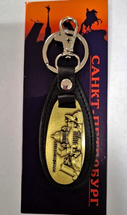 Брелок металлический/кожа «Коллаж. Санкт-Петербург. Мост-Исаакий-Грифон»