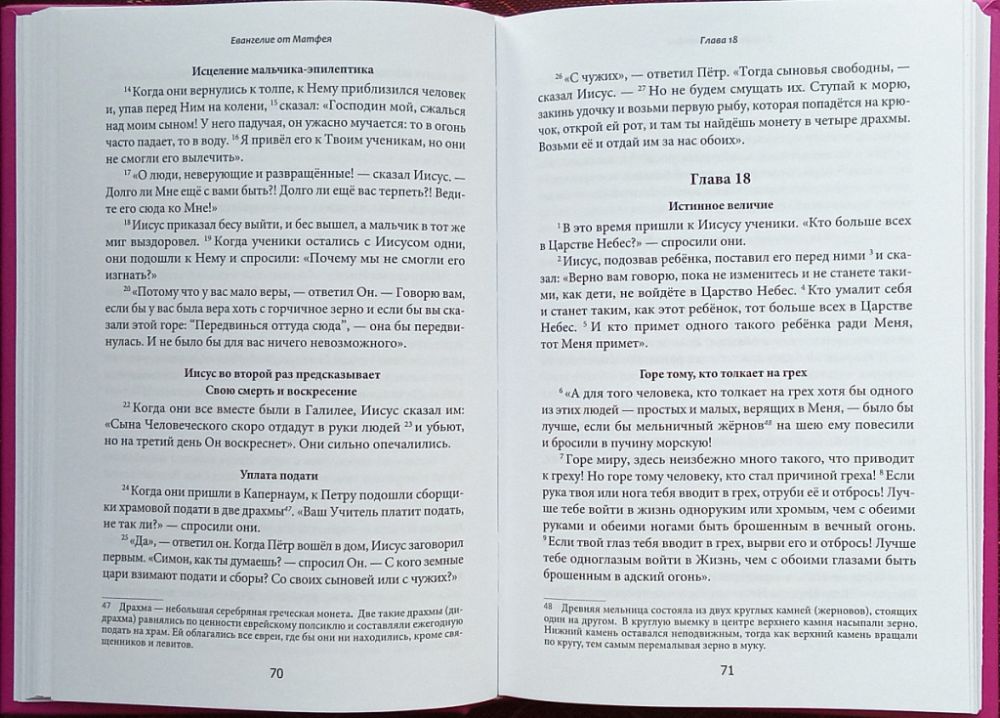 Цель нового перевода – сделать евангельские тексты более понятными современному человеку. Текст печатается с комментариями трудных для понимания мест. Издание содержит карты местности, где происходили евангельские события.