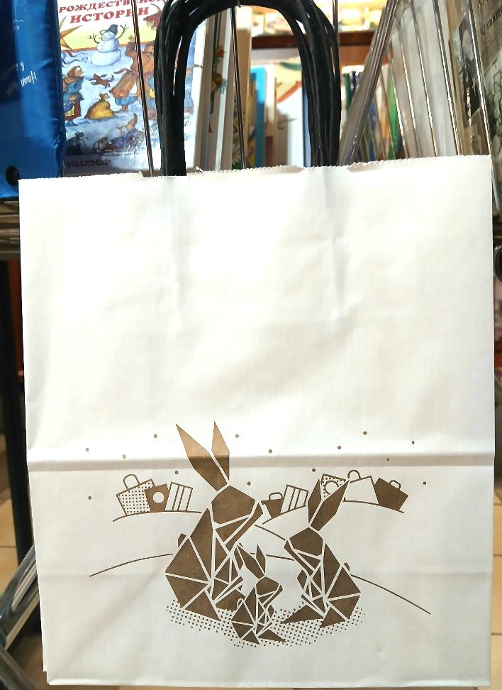 Крафт пакет с кручеными ручками «Кролики» 25*22*12