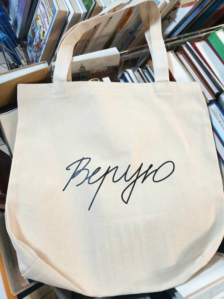 Сумка-шопер холщовая белая с черным принтом «Верую».