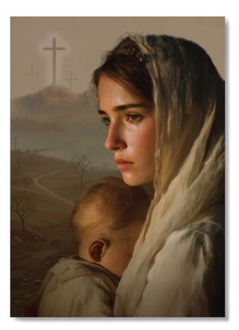 Открытка с изображением Марии и Младенца Иисуса сделана нами для того, чтобы вы могли поздравить кого-то с праздником, одним из самых любимых и долгожданных. Изображение и стихи на оборотной стороне открытки передают всю силу и трагизм материнской любви, в которой радость от рождения первенца переплетается с болью от знания его будущего. Стихотворение говорит о связи между земным и небесным, о трагическом, но светлом земном пути и стремлении к горнему.