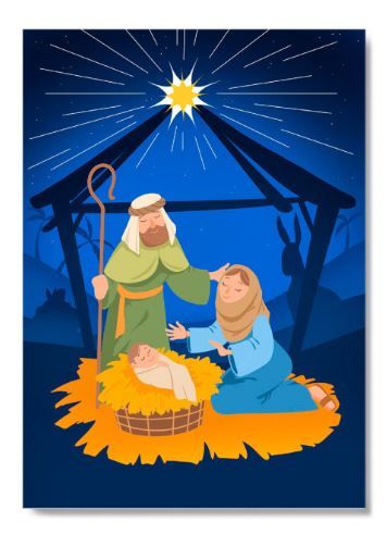 Открытка с изображением Марии, Иосифа, Младенца Иисуса в яслях и рождественской звезды сделана нами для того, чтобы вы могли поздравить кого-то с праздником, одним из самых любимых и долгожданных. Запах хвои и мандаринов, нарядная елка, подарки под этой елкой и неизменное ожидание чуда — сколько бы лет тебе ни было — записаны в нашей памяти с детства и навсегда останутся с нами.