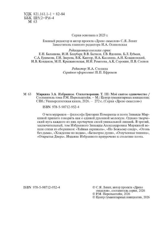 Оригинальный российский философ Григорий Померанц назвал стихи-псалмы своей супруги и единомышленницы Зинаиды Александровны Миркиной «поэзией священной глубины». Но, чтобы услышать это послание, нужно причаститься той тайне, которая призвала стихотворную лавину в жизнь.