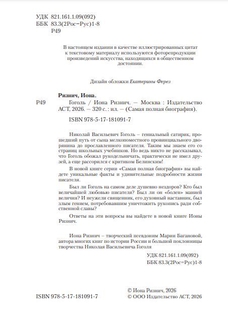 Иона Ризнич – творческий псевдоним Марии Багановой, автора многих книг по истории России и большой поклонницы творчества Николая Васильевича Гоголя.