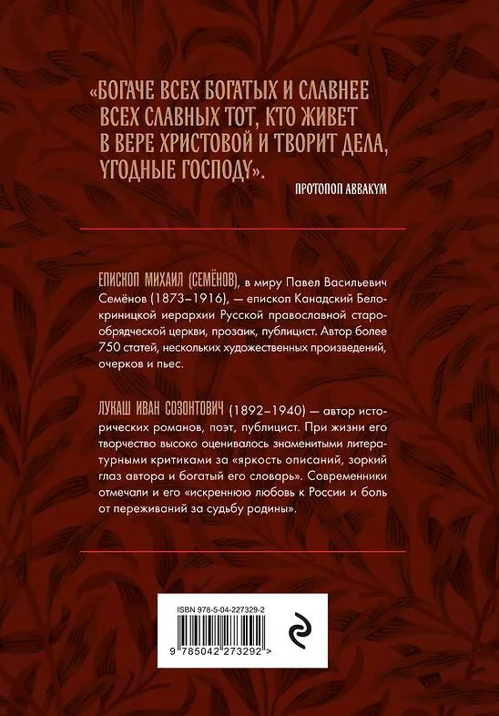 Впервые в современном издании собраны редкие исторические повести рубежа XIX—XX века, принадлежащие перу писателя Ивана Лукаша и епископа Михаила (Семёнова). Их основа — подлинные документы, народные предания и воспоминания современников. Авторы стремились к исторической точности и избегали произвольного вымысла, сохраняя художественную силу повествования.