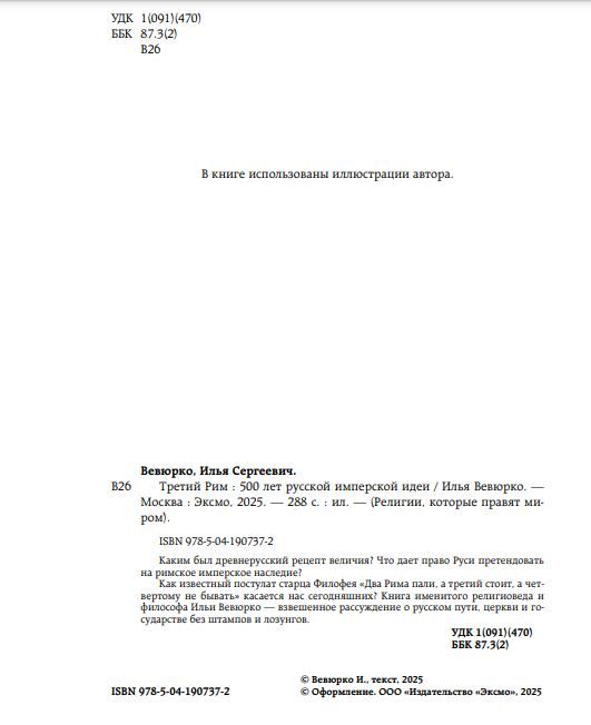 Книга именитого религиоведа и философа Ильи Вевюрко — взвешенное рассуждение о русском пути и церкви, о древнерусском рецепте величия и праве Руси претендовать на римское имперское наследие.