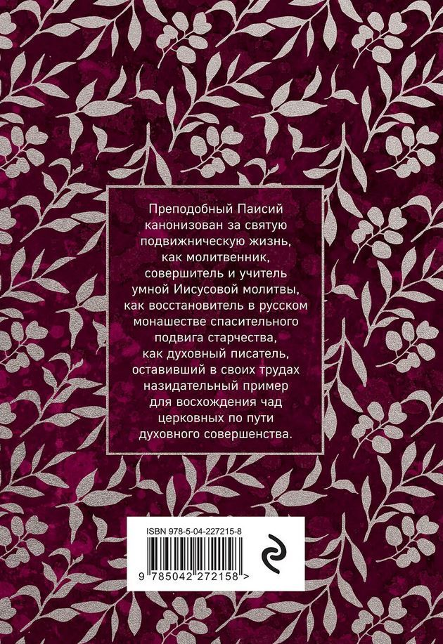 В книгу «Паисий Величковский. Житие и Поучения» вошли избранные труды и житие преподобного Паисия (Величковского) — великого подвижника и старца XVIII века, архимандрита Нямецкого монастыря, возродившего традицию старчества и внутренней (Иисусовой) молитвы на Руси.