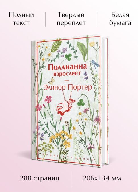 «Поллианна взрослеет» делится на 2 части. В первой события происходят примерно через два года после перелома позвоночника. Поллианне приходится переехать на лето в Бостон к Рут Кэрью, так как её тёте с доктором Чилтоном приходится уехать. Вторая часть истории происходит несколько лет спустя, когда Поллианне уже двадцать лет. Она и её тётя переживают нелёгкие времена в связи с кончиной близкого человека. Чтобы заработать денег, Поллианна и её тётя вынуждены брать в свой дом постояльцев, в том числе Джимми Бина. Взросление приносит не только радости, но и печали, даже Поллианне трудно сохранять свой обычный жизнерадостный вид, но друзья и «игра в радость» помогают пережить все невзгоды.
