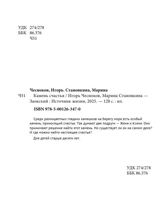 Среди разноцветных гладких камешков на берегу моря есть особый камень, приносящий счастье. Так думают две подруги - Женя и Ксеня. Они принимают решение найти этот камень. Но существует ли он на самом деле? И где можно найти настоящее счастье?