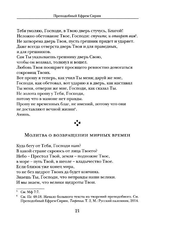 Молитвы, вошедшие в этот сборник, — лишь малая часть великого молитвенного опыта Православной церкви с древних времен до современности. На протяжении веков устремление души к Богу рождало прекрасные и возвышенные слова, которые затем находили отклик в сердцах многих людей. Особенность этого сборника в том, что здесь представлены молитвы редкие, малоизвестные, а также молитвы русских писателей. Довольно большая часть этих молитв появилась в XX веке и свидетельствует о том, что, возможно, в самые трудные времена рождаются самые вдохновенные и искренние молитвы. Сегодня в мире неспокойно, и многим людям нужна духовная поддержка. Молитвы -древние и современные — несомненно, могут стать такой поддержкой.