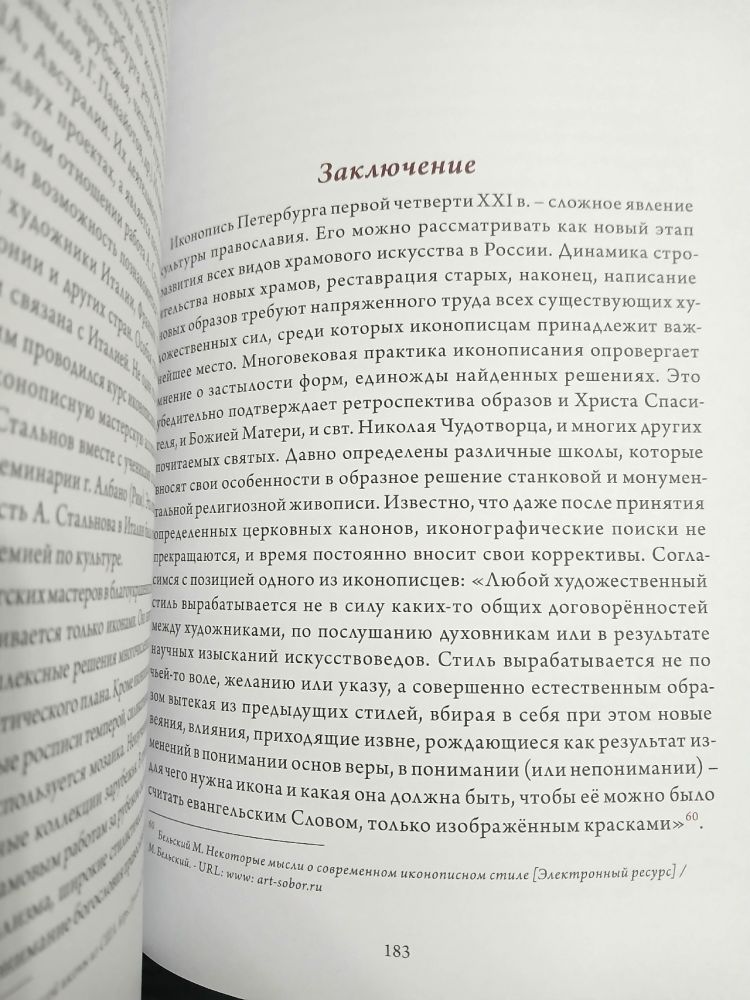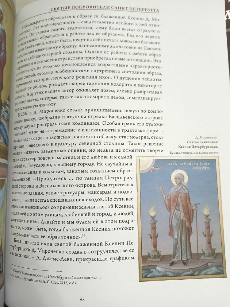 Как написала Нина Сергеевна в предисловии: «Эта книга – результат многолетних наблюдений за развитием иконописи в северной столице. Мне хотелось показать творческие поиски современных мастеров, убедить ряд исследователей искусства современной иконы, что иконопись развивается, не оставаясь в рамках копирования старых образцов».