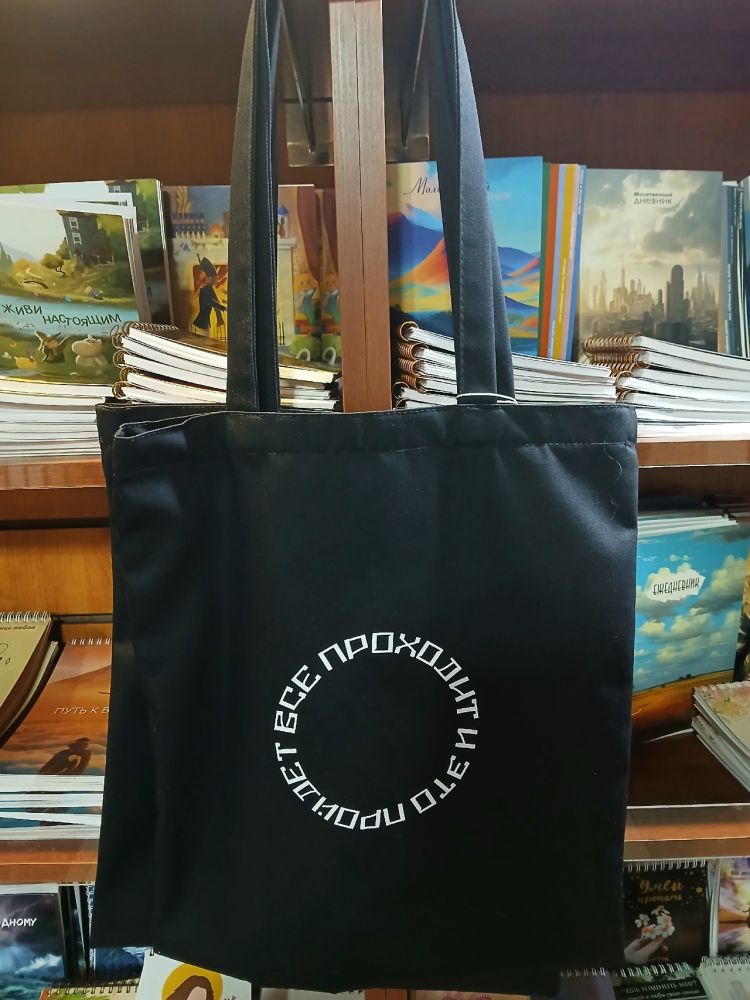 Сумка-шопер холщовая черная «Все проходит и это пройдет».