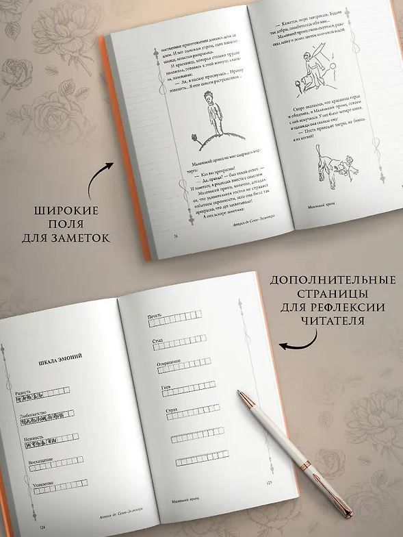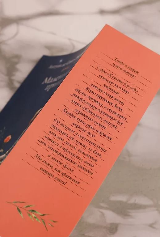 - В книжных блогах и соцсетях очень популярны видео и посты на тему «Как читать книги?». Книги серии отвечают на этот вопрос, обогащая опыт чтения и позволяя с головой погрузиться в контекст каждого произведения. Широкие поля позволяют делать заметки по ходу чтения, а дополнительные полосы со шкалой эмоций, списком персонажей для оценки и рекомендациями способствуют рефлексии и глубокому пониманию прочитанного.