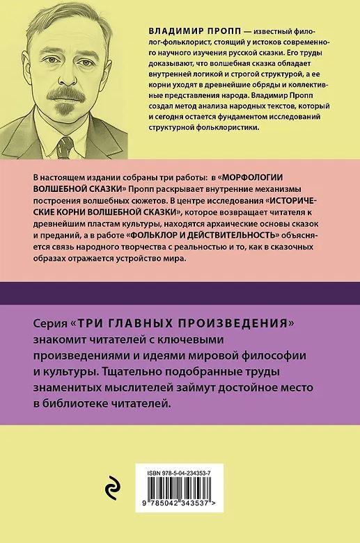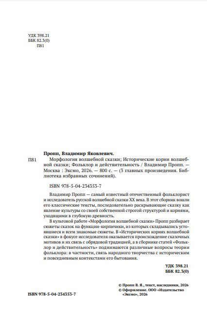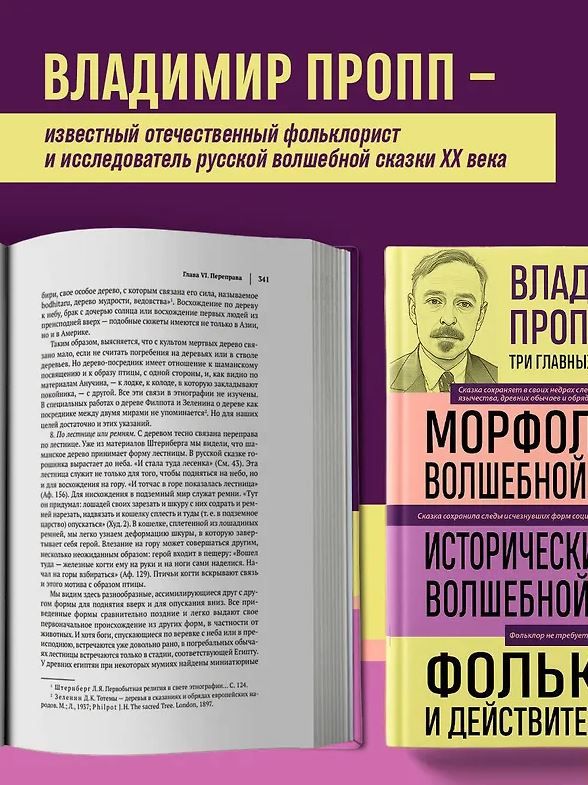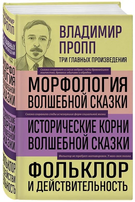 «Владимир Пропп. Морфология волшебной сказки. Исторические корни волшебной сказки. Фольклор и действительность» — это сборник ключевых произведений самого известного отечественного филолога-фольклориста Владимира Проппа, который посвятил свои исследования поиску ответов как раз на этот, казалось бы, простой вопрос. Чтобы на него ответить, Пропп предлагает разобрать сюжеты сказок на их составляющие — функции — и посмотреть, из чего именно складывались устоявшиеся и всем знакомые сюжеты волшебных сказок.