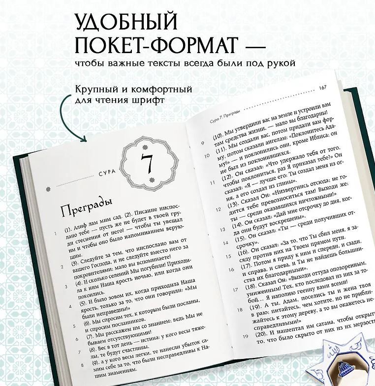 Самый известный смысловой перевод Корана на русский язык академика Игнатия Крачковского. Выдержал более 40 изданий, общий тираж которых превышает 2 миллиона экземпляров. Считается академическим и одним из самых авторитетных среди русскоговорящих мусульман. Великолепное оформление переплета серебряной фольгой, удобный, компактный формат. Будет полезен также студентам-востоковедам и изучающим арабский язык.