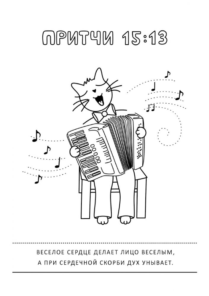 Эта раскраска соединяет в себе мудрость библейских притч и милые изображения котиков, которые поднимут настроение и детям, и взрослым. Каждая страница содержит вдохновляющую цитату из Священного Писания и забавную иллюстрацию с пушистым героем, готовую к раскрашиванию.