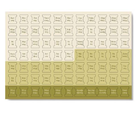 Этот комплект индексов предназначен для так называемой полной Библии или православной Библии, которая содержит, помимо канонических 66 книг Библии также 11 дополнительных, второканонических. На оборотной стороне листа в индексами вы найдете список всех книг полной Библии. Метки последовательно наклеиваются на правый край страницы с заголовком нужной вам книги. Таким образом вы сможете быстро и точно открыть нужный вам раздел.