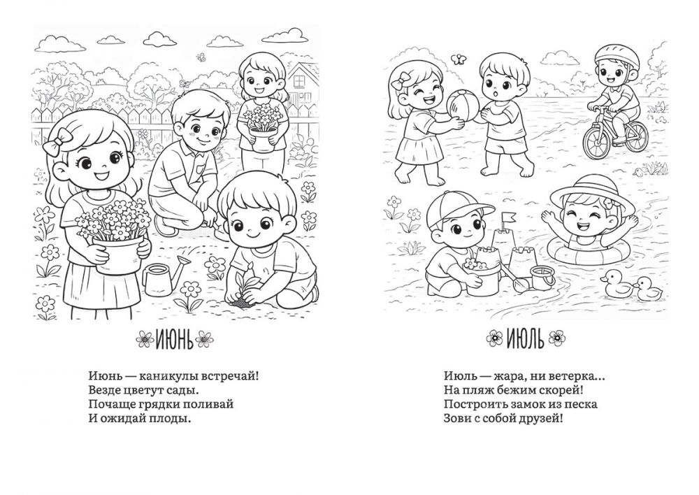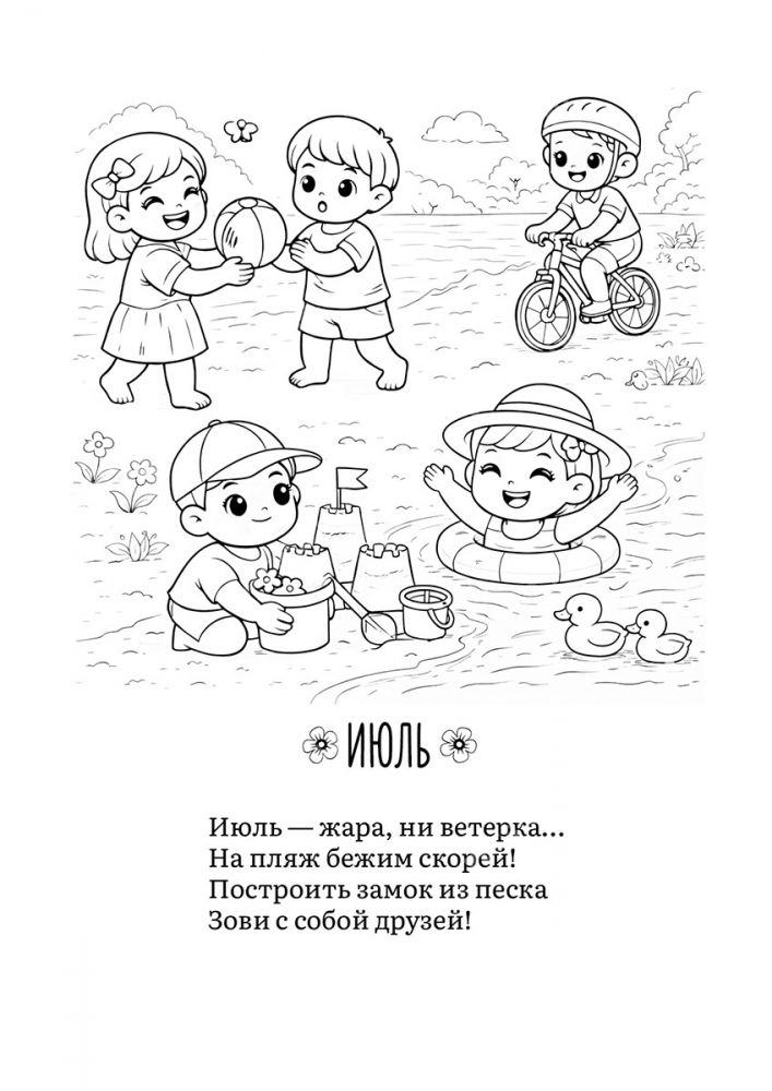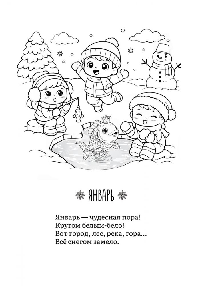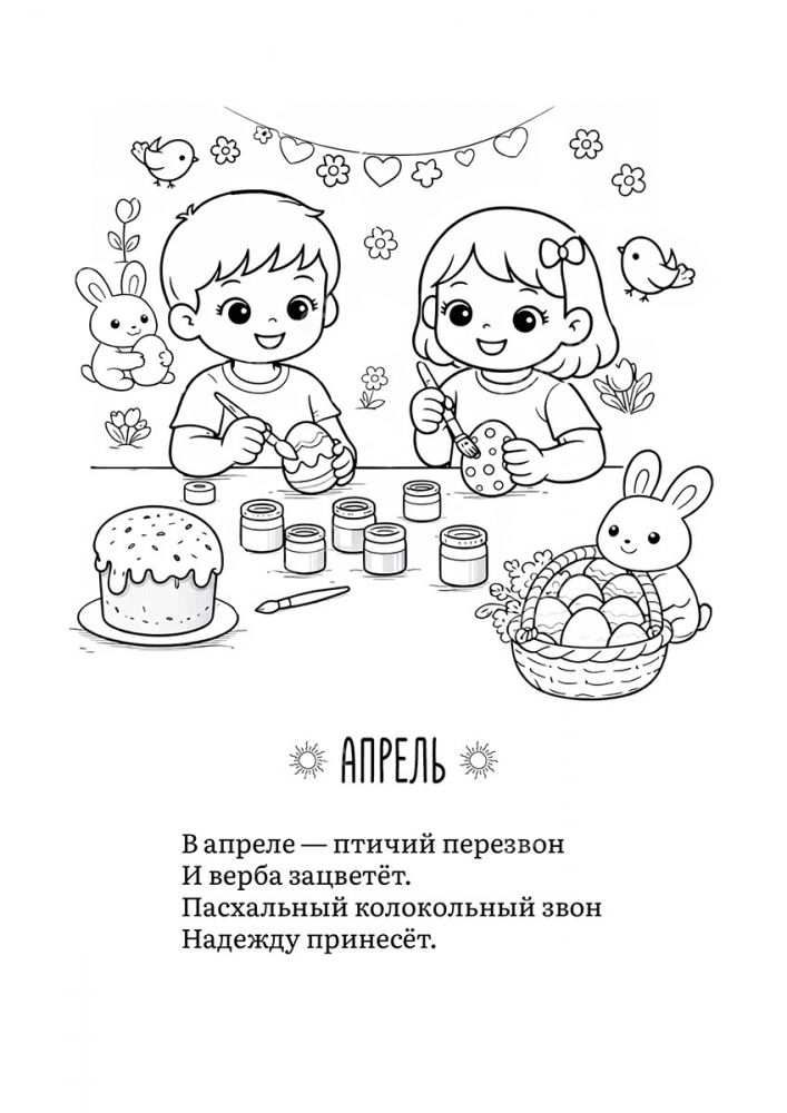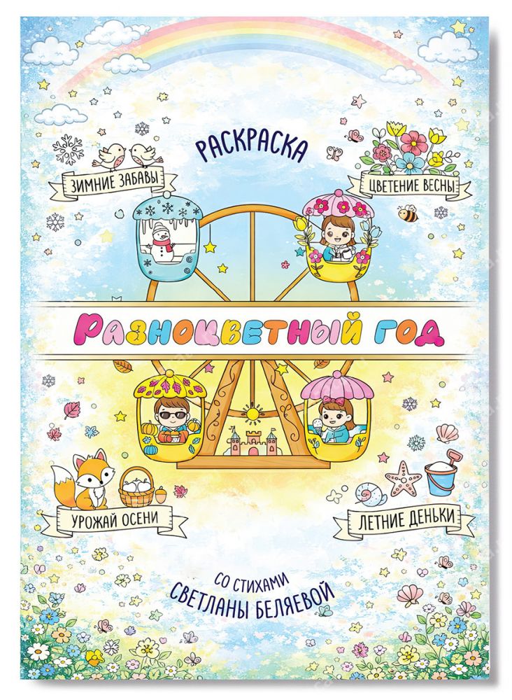 Раскраска "Разноцветный год" со стихами Светланы Беляевой — это увлекательное путешествие по временам года, которое познакомит вашего малыша с сезонными праздниками, природой и научит находить радость в каждом месяце.