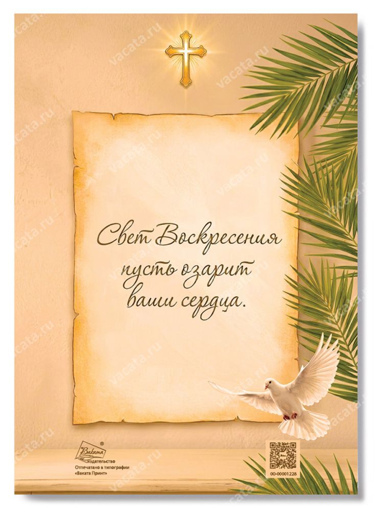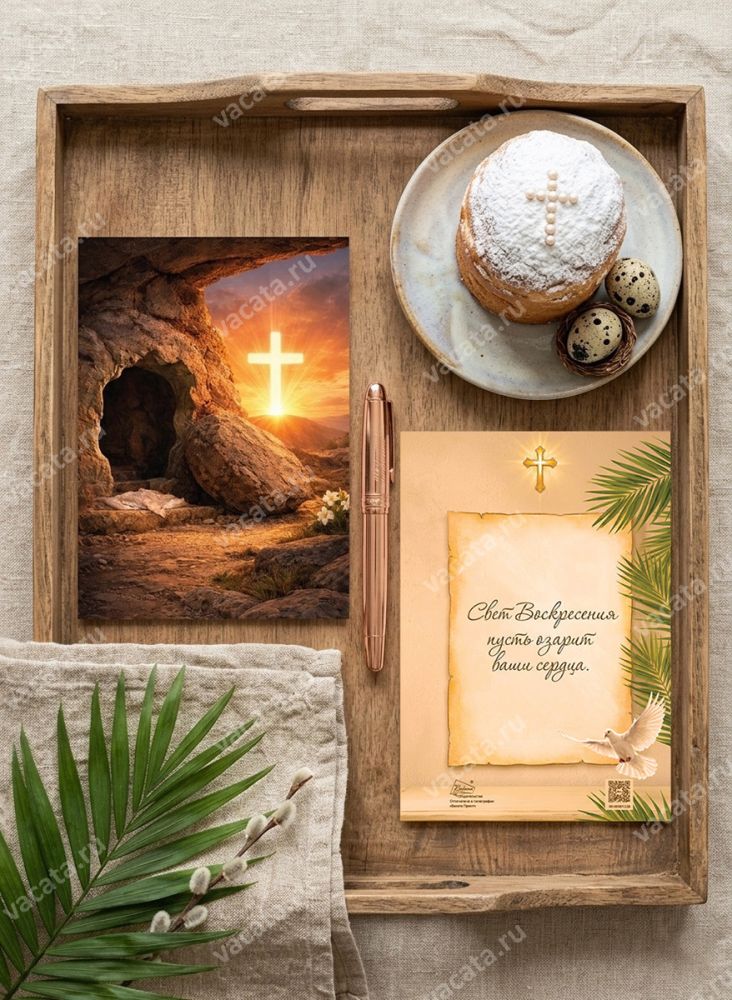 Эта открытка будет прекрасным дополнением к вашему поздравлению, напоминая о светлом моменте Воскресения и даря тепло в этот особенный день и передавая важность и глубину события.