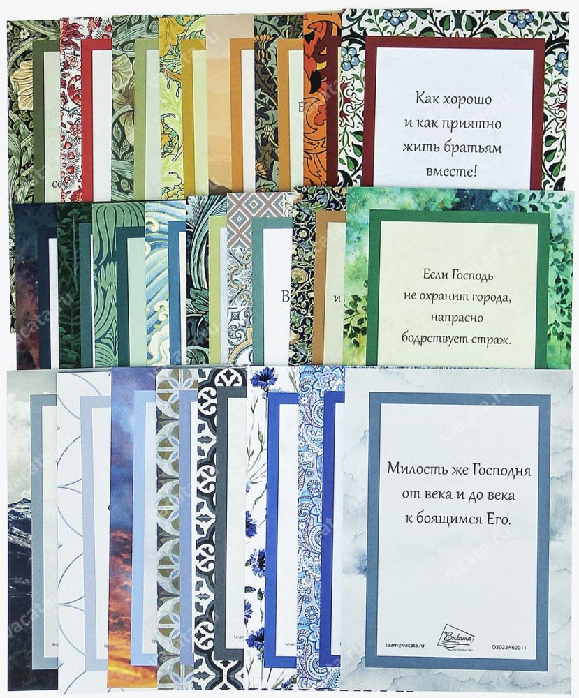 Псалом — это особый жанр молитвенной поэзии. Библейская книга Псалтирь состоит из 150 псалмов. Мы выбрали из них наиболее известные и выразительные и издали в виде красочных открыток.