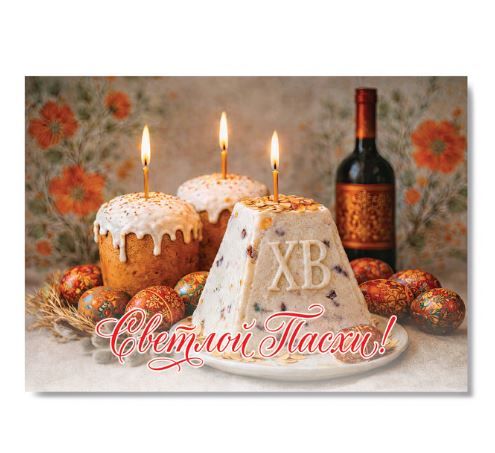 Надпись на открытке: «Светлой Пасхи!»