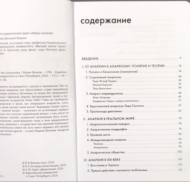 Слово «анархия» у многих ассоциируется с хаосом и произволом. Тем не менее древнее понятие «анархия», или «безначалие», ставит важнейшие для политической теории вопросы. Возможна ли жизнь без начальника? Какой будет эта жизнь? Одинокой, бедной, беспросветной, тупой и короткой, как писал теоретик государства Томас Гоббс? Либо же свободной, гармоничной, справедливой и яркой, как утверждали анархисты, сами, в отличие от Гоббса, являя пример такой жизни? Выражаясь более строго, можно сказать, что главный вопрос — возможен ли устойчивый порядок без иерархии? По сути, это и вполне современный вопрос о том, могут ли сетевые, горизонтальные способы социальной организации быть основными, а не маргинальными, существующими лишь в тени иерархически устроенных порядков, связанных с государством или крупной корпорацией. Поскольку окончательного ответа нет, есть смысл задавать этот вопрос снова. Об этом и еще многом другом — в книге Вадима Волкова «Анархия, или Жизнь без начальника».