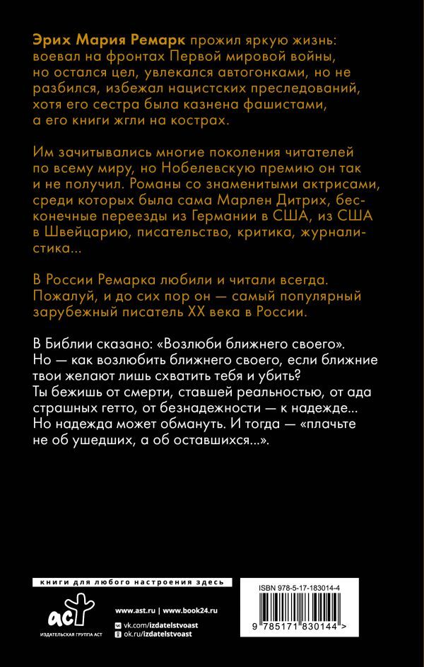 – «Возлюби ближнего своего» — пронзительный роман Эриха Марии Ремарка, одного из самых популярных зарубежных писателей XX века в России.